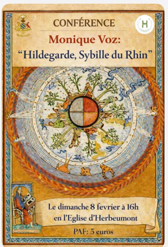 Monique VOZ présente la conférence « Hildegarde von Bingen, sybille du Rhin » le vendredi 16 janvier 2026 à 19h, dans la collégiale Saint-Ursmer à Lobbes et le 8 février à Herbeumont à 16h.