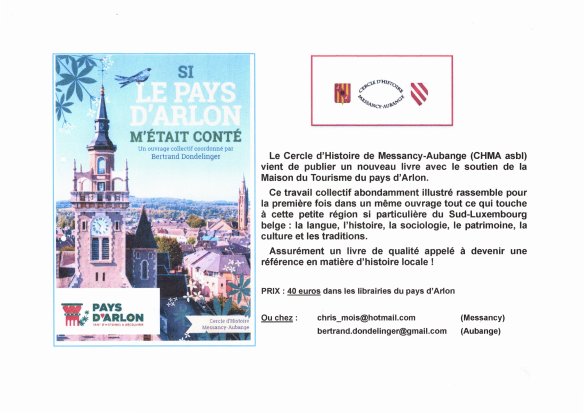 Publication sur Le Pays d’Arlon, coordonnée par Bertrand DONDELINGER. Nos collègues Paul MATHIEU, Bernard CAPRASSE, Franz CLÉMENT et Philippe GREISCH y ont collaboré.