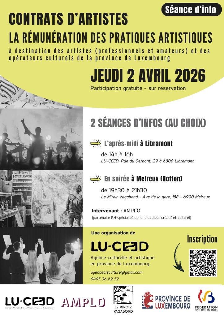 L’AGENCE CULTURELLE ET ARTISTIQUE EN PROVINCE DE LUXEMBOURG organise une formation sur la rémunération des pratiques artistiques le jeudi 2 avril 2026