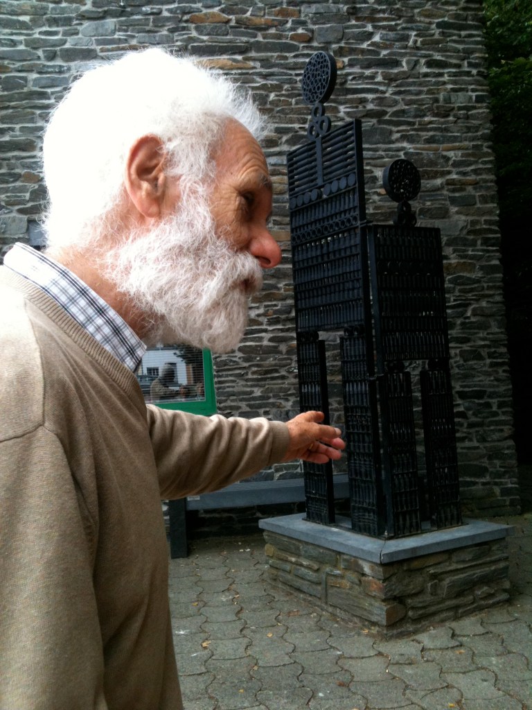 AB_09_14_Morette Published septembre 16, 2014 at 1536 × 2048 in Académie News Deuxième semestre 2014 Jean Morette devant sa sculpture réalisée à la demande d’Alain Bertrand