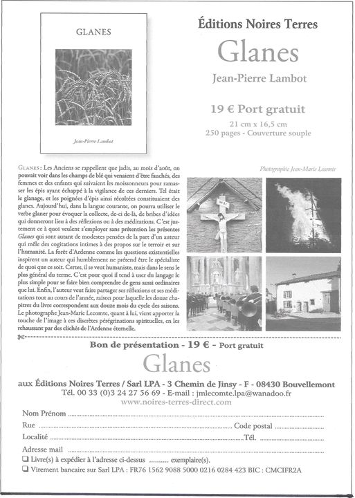 Jean-Pierre LAMBOT publie Glanes, aux éditions Noires Terres (2021). Photos de Jean-Marie LECOMTE.