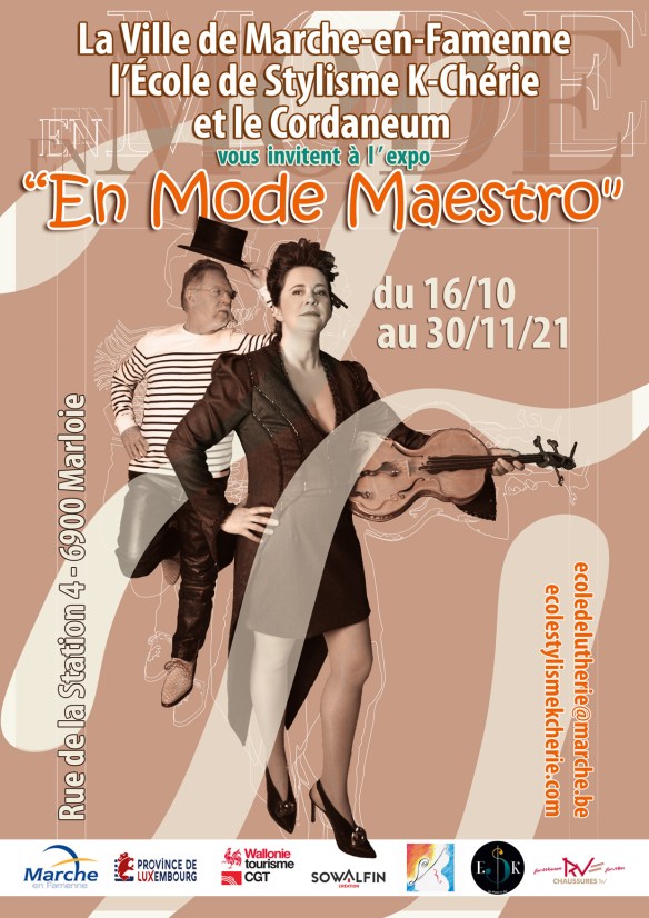 Invitation à l’exposition « En mode maestro » à l’École de lutherie de Marche-en-Famenne, en collaboration avec l’École de stylisme.