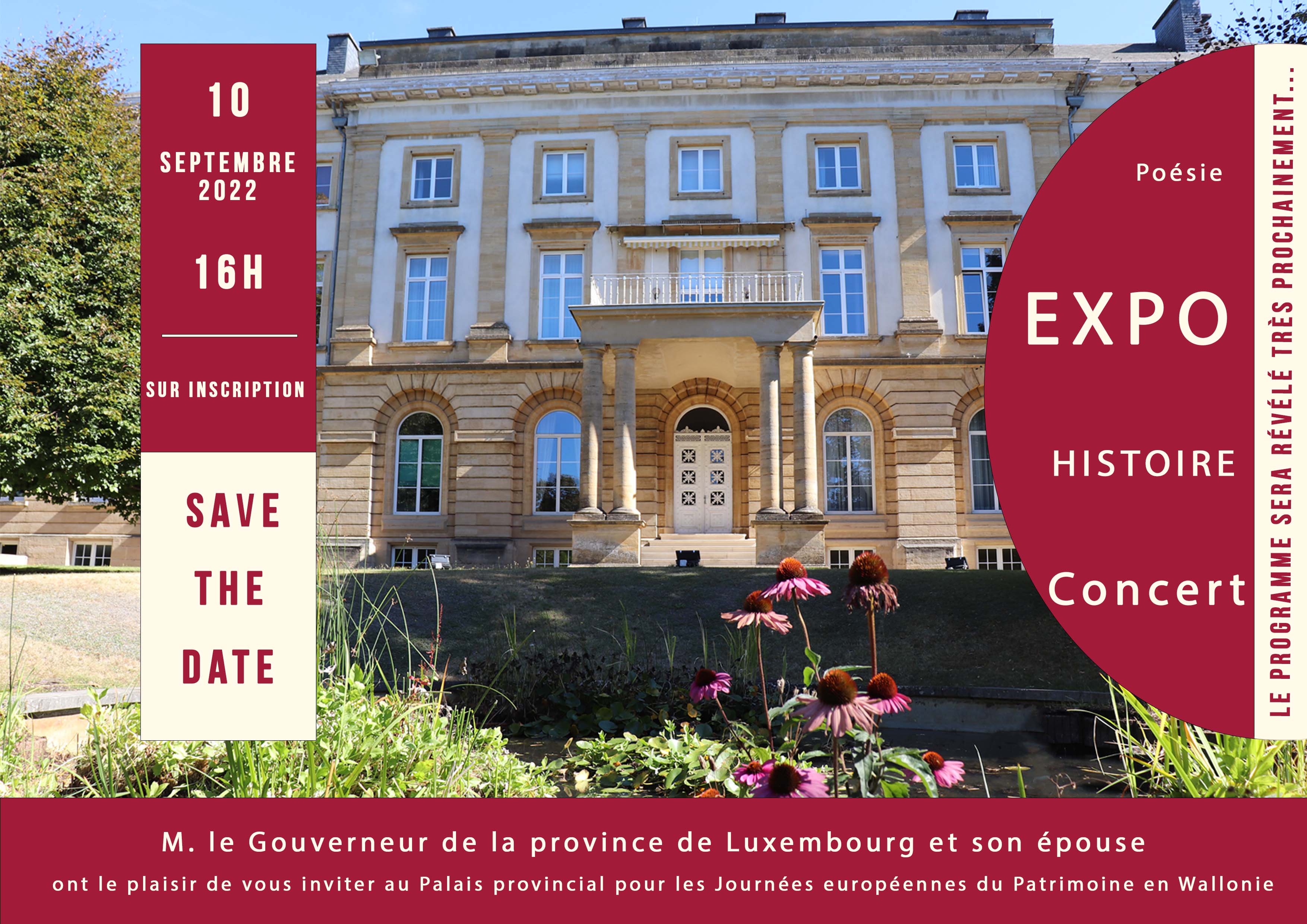 Le samedi 10 septembre à 16h, à l’occasion des Journées européennes du Patrimoine, au Palais provincial Poésie – Histoire – Concert autour de l’exposition Rhapsodie picturale d’Antoine JULIENS. Réservation obligatoire. Lecture de textes par Guy DENIS et Paul MATHIEU.