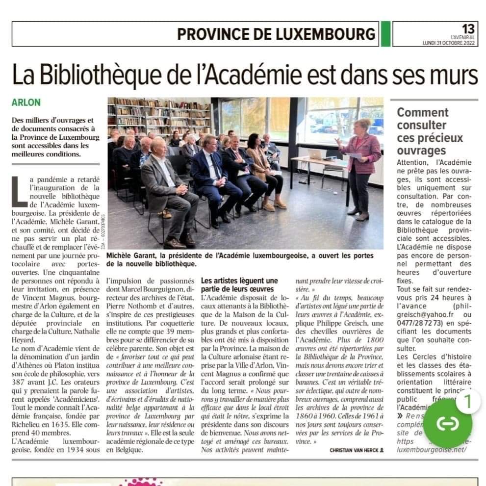 Un article recensant la séance est paru dans L’Avenir du Luxembourg du 31 octobre :