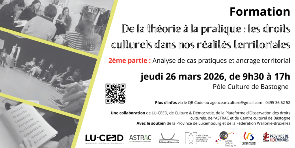 Formation sur les droits culturels, le 26 mars à Bastogne, par l’Agence culturelle et artistique.