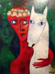 Cette artiste, qui a suivi une formation à la fois musicale et plastique (diplôme d’arts graphiques et de maîtrise de peinture de chevalet à l’Académie des Beaux-Arts de Bruxelles), nous offre un monde d’images qu’une enfance villageoise, proche de la nature, à l’écart des tumultes, a rendue attentive à ces choses simples et graves devinées autour des réalités les plus familières : les jeux, le chat, le verger, la noce gentiment étonnée.